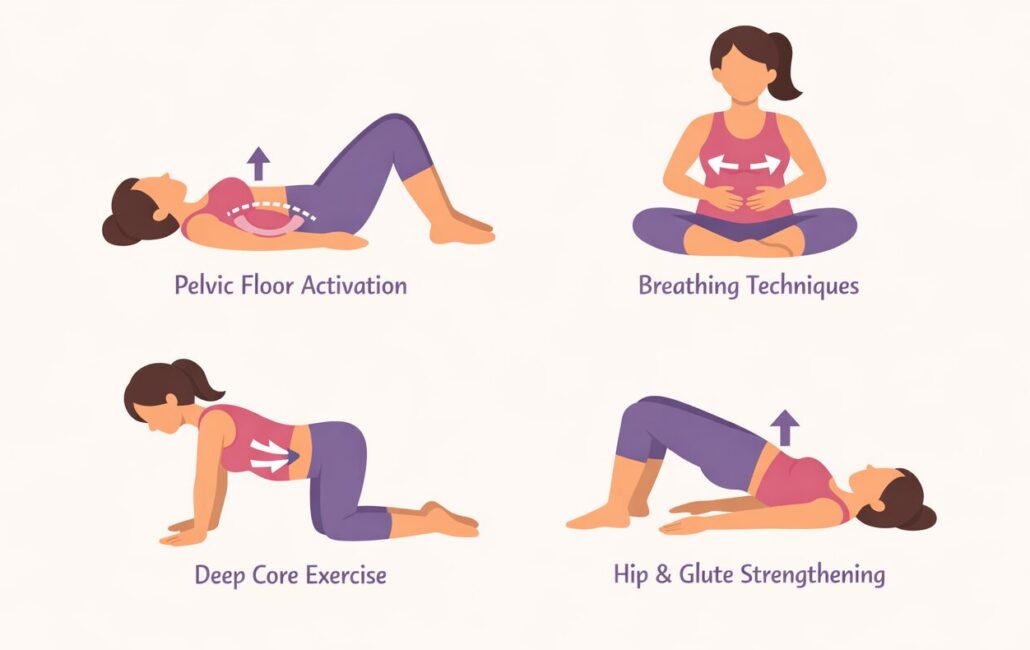 1. Targeted Pelvic Floor Mucle and Core-Abdominal Exercises